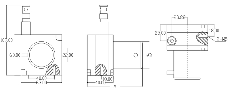 1.第一安装基面,常规固定方式(默认)螺纹孔2-M5;