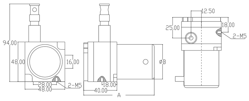 1.第一安装基面,常规固定方式(默认)螺纹孔2-M5;